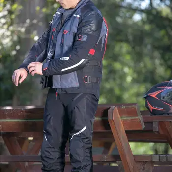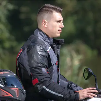 Geacă moto sport-touring cu aspect sportiv, concepută bărbaților. Materialul de bază este textil, este întărit cu piele pe părțile intens solicitate, este foarte rezistent și usor de curățat. Prin căptușeala termică și membrana impermeabilă, geaca este utilizabilă în diferite conditii meteo, simțul de confort este asiguraț și în frig și în cald. Siguranța este asigurață de protectoarele SW așezate pe coturi și umere, pe spate este un protector din spumă moale. Este dotat cu buzunare mari pentru depozitarea echipamentelor mici. O geacă touring cu un raport foarte bun de preț/calitate.