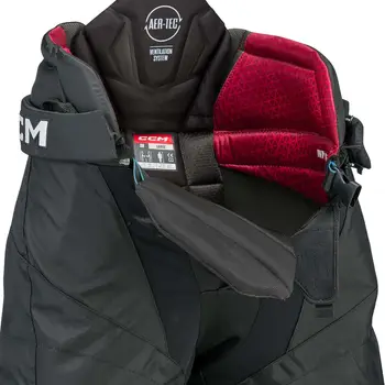 Protecția șoldurilor: Echipamentul este realizat cu capace din PE turnat cu o bază din spumă ventilată, care a fost ajustată pentru a se contura în jurul șoldurilor și rinichilor, îmbunătățind confortul. Pentru acea protecție de nivel profesionist la care vă puteți aștepta de la pantalonii de hochei de înaltă calitate de la CCM, părțile laterale au fost întărite cu scuturi din plastic PE turnat. Baza de spumă ventilată este concepută pentru a permite o mai mare aerisire, menținându-vă răcoros în timp ce jucați.