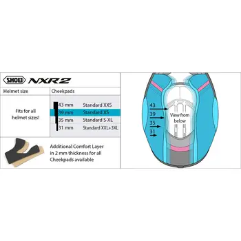 Buretele pentru cască moto Shoei NXR2 39mm facilitează punerea și scoaterea căștii. Partea lor inferioară voluminoasă reduce eficient impactul sonor fără a restricționa mobilitatea capului. Ele asigură o fixare stabilă și sigură a căștii. Puteți folosi burete ușoare mai groase sau mai subțire pentru o ajustare individuală. Sunt interschimbabile. Preformarea ergonomică, tridimensională a buretelor asigură o odihnă extinsă a buretelor și, astfel, o fixare stabilă a căștii, atât pe circuit, cât și pe șosea. Folosirea materialelor moi periate, cu uscare rapidă, în zona de contact, promovează o senzație de purtare confortabilă. Materialul roșu de la marginea husei confer un aspect sportiv și permite evacuarea umezelii. Înlocuirea buretelor restabilește potrivirea originală și vă oferă un interior de cască proaspăt și igienic, rapid și ușor.