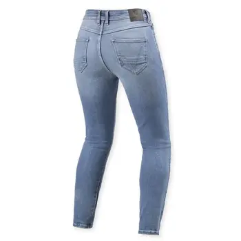Blugii Moto Damă cu Cordura® REVIT SHELBY 3 SK concepuți pentru femeile care doresc o combinație perfectă între stil, confort și protecție, acești blugi skinny cu talie medie oferă o potrivire impecabilă. Datorită materialului inovator 16.7oz CORDURA® PWR|Hyperstretch denim, combinat cu tehnologiile COOLMAX® și THERMOLITE®, acești blugi oferă cea mai mare elasticitate posibilă. Designul lor special permite o potrivire ultra-strânsă, conturând perfect corpul și asigurând libertate totală de mișcare. Pe lângă stilul impecabil, acești blugi oferă și protecție avansată. Sunt echipați cu protecții ultra-subțiri și flexibile SEESMART la genunchi (CE-Level 1), menținând o siluetă elegantă fără a compromite siguranța. Pentru un plus de protecție, pot fi echipați cu protecții opționale pentru șolduri SEESMART.