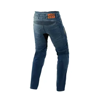 , oferind cel mai înalt nivel de protecție AAA. Acestea sunt echipate cu un strat exterior din denim elastic de 11,5 oz, realizat din 98% bumbac și 2% elastan, care asigură flexibilitate și confort. Stratul interior utilizează materialul avansat Tri-Stretcher® PRO 5.0 Denim, amplasat strategic în zonele cu risc ridicat, precum șezutul, șoldurile și genunchii, pentru o protecție sporită împotriva abraziunii și impactului. Aceste materiale sunt special concepute pentru a rezista la frecare intensă și pentru a absorbi șocurile, oferind siguranță optimă motocicliștilor.