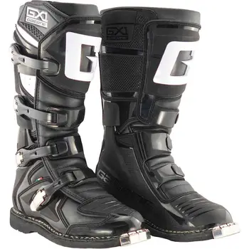 Cizmele Enduro-Cross GAERNE GX1 ENDURO sunt echipate cu fețe din piele integrală care sunt foarte rezistente la abraziune și tăieturi. Structura exterioară este formată pentru a oferi un sistem anti-sprain pentru gleznă, oferind în același timp mobilitate. Căptușeala internă dublă oferă respirabilitate și confort la atingere. Zona piciorului este acoperită de un material plastic foarte ușor care oferă riderului un confort sporit și sensibilitate la maneta de viteze și este realizat cu grosimi și densități variabile pentru a garanta siguranță totală în zonele cele mai sensibile. Protecțiile TPU sunt amplasate pe tibie, călcâi și în zona maleolei. Talpa este fabricată din cauciuc G.Light cu o bandă de rulare specifică pentru Enduro care oferă o aderență excelentă. Sunt cizme moto profesionale, bine realizate și confortabile pentru orice mediu de enduro-cross.