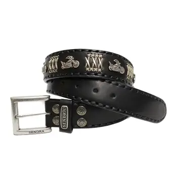 Curea din piele Sendra Boots 7658 Negro este un accesoriu realizat meticulos manual, produs cu mândrie în Spania. Având o căptușeală din piele și fiind decorată cu nituri metalice de tip motociclist, această centură îmbină meșteșugul artizanal cu detalii îndrăznețe, oferind un aspect distinctiv și elegant.