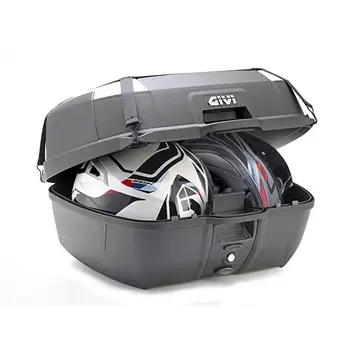 Geanta Moto Topcase GIVI B45+ Monolock, fabricat din plastic rigid, are dimensiunea ideală pentru utilizarea în mediul urban, dar se adaptează perfect și călătoriilor pe distanțe medii, datorită capacității sale de a găzdui până la două căști integrale. Designul său pătrățos include două inserții estetice pe capac. Modelul B45+ vine echipat standard cu o plasă elastică de depozitare, atașată pe capac prin inele speciale integrate. De asemenea, sunt incluse o pernă pentru spate dedicată pasagerului și un covoraș moale pentru partea inferioară a compartimentului.