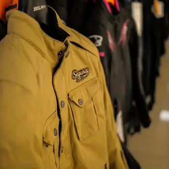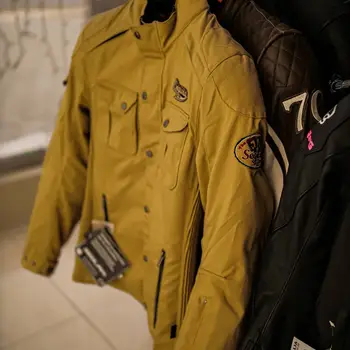 Geacă moto cu stil vintage, croială lungă, confecționată din Serica. Se adaptează ușor tuturor condițiilor meteorologice, datorită membranei impermeabile și a căptușelii termice detașabile. Dotat cu buzunare multiple și protecții detașabile certificate CE pe umeri și coate.