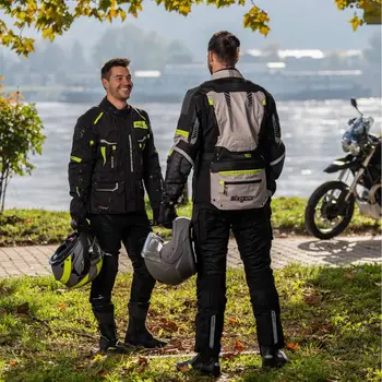 Geaca moto din textil Sixgear Supertech este perfectă pentru fiecare zi a anului! Are o geacă interioară din Softshell care poate fi purtată separat. Geaca Supertech este echipată cu membrană impermeabilă, respirabilă și anti-vânt REISSA, protectoare CE detașabile pe coate și umeri, și cu o spumă absorbantă de șoc pe spate pentru a asigura confortul și protecția sporită. Este o geacă moto multifuncțională de înaltă calitate destinată pentru touring!