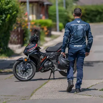 Geaca moto de vară Sixgear Airforce este realizată din textil cu țesătură respirabilă bine ventilată și cu o căptușeală impermeabilă detașabilă. Este echipată cu protecții detașabile la cotiere și umeri, cu căptușeală din spumă pe spate, înlocuibilă cu protecții pentru spate SAS-TEC și cu inserții elastice pe talie, talie reglabilă cu catarame.