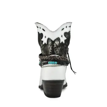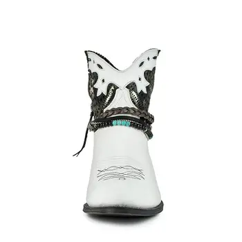 Modelul Sendra Boots 15107 de botine albe cu deschidere pe ambele părți, fără fermoar, cu 3 curele de ham, toc de 4,5 cm, rotund și foarte confortabil! Talpa este din piele, tocul are un strat de cauciuc rezistent la abraziune, construcție GoodYear!