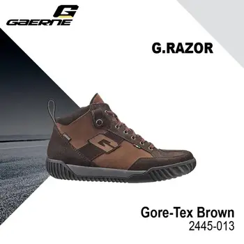 Ghete moto GAERNE G. RAZOR cu un design urban, pentru bărbați. Ghetele foarte confortabile, confecționate din piele naturală și textil, sunt căptușite cu perne moi pe partea gleznei și pe călcâie pentru a maximaliza simțul de confort și a proteja picioarele. Membrana impermeabilă, respirabilă și antivânt Gore-Tex oferă protecție împotriva apei și asigură respirația optimă a pielii!