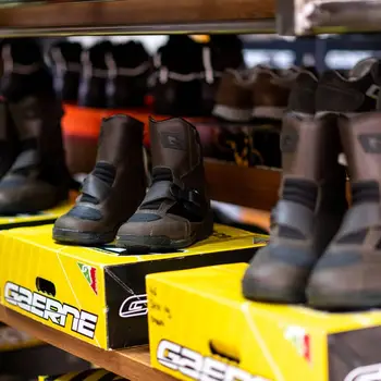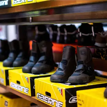 Cizme moto sport touring G-STELVIO de la Gaerne, cu talie scurtă, confecționate din piele naturală și materiale sintetice. Sunt dotate cu membrană imprermeabilă și respirabilă DryTech de la Gaerne. Membrana DryTech ajută respirabilitatea pielii, evacuează umezeala și nu lasă intrarea apei în cizme, astfel menține uscat picioarele și asigură temperatură optimă, confortabilă. Noua închidere laterală este realizată cu o cataramă și curea de velcro pentru o închidere ușoară și precisă. Talpa este confecționată din cauciuc pentru aderență bună și astfel control mai mare asupra motocicletei.