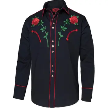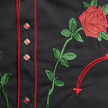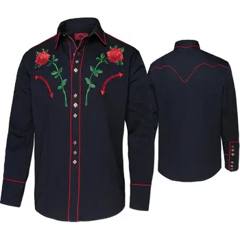 Descoperiți rafinamentul cămășii elegante cu mâneci lungi, ideală pentru pasionații de stil western. Această cămașă neagră se remarcă prin detalii sofisticate, inclusiv un sistem patentat și o broderie specială pe piept, adăugându-i un aer deosebit și unicit.
