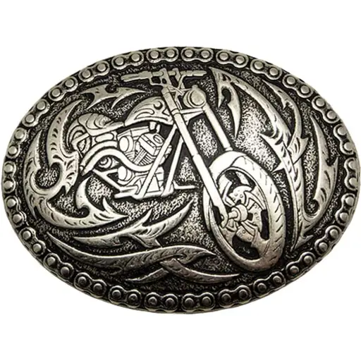 Catarama curea WILD WEST S32683 este realizată pentru curele din piele și are un decor detaliat cu o motocicletă.