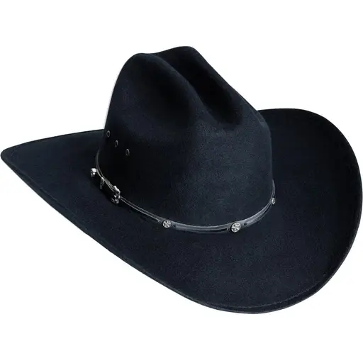 Pălărie cowboy din bumbac WILD WEST SAN ANTONIO este o pălărie neagră, mexicană clasică din pâslă . Este fabricată din bumbac și poliester și are un stil western.