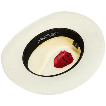 Pălăria cowboy din paie WILD WEST DRACO este o pălărie albă fabrictă din paie de hârtie și este o îmbrăcăminte perfectă și ușoară de vară. Are un decor interior ca și exterior și are un stil western original.