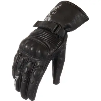 Mănuși moto Sixgear Jolie au fost concepute special pentru femei. Au un caracter feminin, elegant. Sunt confecționate din piele de capră, confortul este asigurat de trăsătura moale a pielii. Siguranța este asigurată de protectoare dure pe monturi și de spuma absorbantă de soc pe degețe Pe palme sunt întărite de un strat complementar de piele.