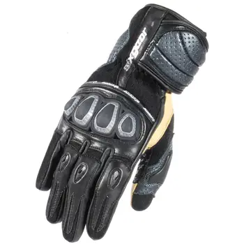 Mănuși moto sport-touring pentru vară, fabricate din piele perforată și textil. Au design atragător, privind culorile și aranjarea elementelor componente. Simțul de confort este asigurat de sistemul de ventilație optimalizată. Siguranța este dată de utilizarea protectoarelor dublu strat de tip TPU și de protectoarele de spumă absorbantă de șoc pe palme.