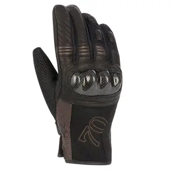Mănușile moto de vară din piele Segura Russel au un stil vintage, sunt realizate dintr-o combinație de piele, plasă, plasă 3D, Amara și Lycra. Au un protector de carbon pe articulații și întărituri plasate strategic pentru o rezistență mai mare. În plus, sunt compatibile cu utilizarea ecranelor tactile.