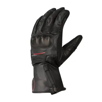 Mănuși moto lungi de iarnă BERING ONTARIO, fabricați din piele. Sunt dotate cu membrană impermeabilă și căptușeală termică pentru performanțe excelente în condiții meteo nefavorabile. Au protecții integrate pe articulații, întărituri laterale și întărituri pe palmă pentru o rezistență mai mare. Sunt compatibile cu utilizarea ecranelor tactile.