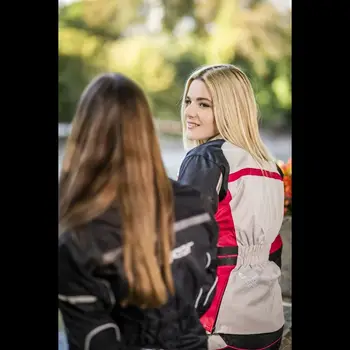 Pantaloni moto, concepuți pentru femei, cu caracter feminin, care domină prin culori și prin formă. Sunt confecționați din textil de calitate, în 3 straturi. Sunt destinați călătoriilor lungi, protejează purtătorul în situații dificile. Având căptușeală termică detașabilă, pantaloni sunt utilizabili pe lângă diferite condiții meteo. O alegere foarte bună dacă căutați pantaloni rezistenți și confortabili pentru touring.