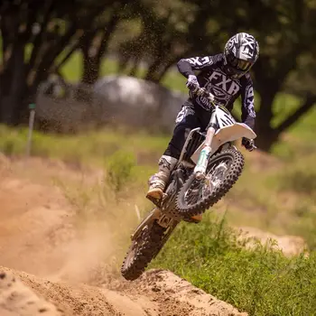 Pantalonii enduro FXR RACING CLUTCH MX au o construcție durabilă 600D pentru rezistență și confort, cu inserții elastice pentru flexibilitate și confort sporit. De asemenea, pantalonii au panou întărit la genunchiul interior pentru protecție împotriva căldurii și abraziunii, căptușeală din plasă de poliester pentru respirabilitate și confort și cusături triple în zonele critice pentru rezistență și durabilitate suplimentare. Designul este imprimat prin sublimare, astfel este asigurat că nu se decolorează în timp. Pantalonii asigură confort și protecție și vă vor servi cu siguranță pe pistă sau pe trasee.