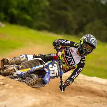 Pantalonii enduro FXR RACING CLUTCH PRO MX au o construcție durabilă 600D pentru rezistență și confort, cu inserții elastice care promovează libertatea de mișcare. De asemenea, pantalonii au țesătură interioară rezistentă la abraziune, căptușeală din plasă de poliester pentru respirabilitate și confort și cusături triple în zonele critice pentru rezistență și durabilitate suplimentare. Designul este imprimat prin sublimare, astfel este asigurat că nu se decolorează în timp. Acești pantaloni foarte bine întăriți și axați pe confort vă vor servi cu siguranță pe pistă sau pe trasee.