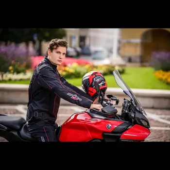 Pantaloni touring, masivi și rezistenți. Sunt confecționate din materiale sintetice rezistente, care asigură confort și siguranță. Având căptușeală thermică detașabilă pantaloni sunt utilizabili și în frig și în cald. Sunt călduroase la temperaturi scăzute iar scotând căptușeala, aerul trece mai ușor prin materialul de bază, pantaloni devin bine ventilate. Model cu un aspect modern, echipat cu protectoare de calitate, o alegere bună dacă doriți pantaloni de calitate la preț accesibil.