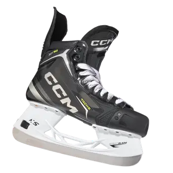 Designul ergonomic asigură o ajustare perfectă a piciorului, reducând astfel disconfortul și permițând o utilizare prelungită fără oboseală. Tehnologia de transfer a energiei optimizează fiecare pas, permițând jucătorilor să execute mișcări rapide și precise pe gheață. Fabricate din materiale rezistente la uzură, patinele Tacks XF90 sunt concepute pentru a face față celor mai exigente condiții de joc, asigurând durabilitate și performanță de lungă durată. Sistemul de șireturi avansat permite o ajustare rapidă și ușoară, oferind o fixare sigură și personalizată a piciorului. Echipate cu lame de calitate superioară, aceste patine garantează aderență optimă și control excelent pe gheață.