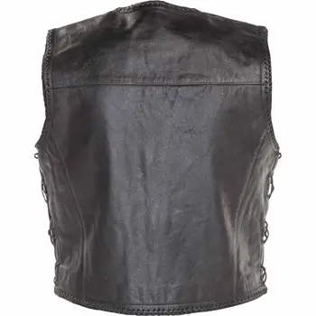 Vestă moto fabricată din piele de vacă cu un finisaj de stil vintage. Cu închidere cu catarame și șireturi laterale.
