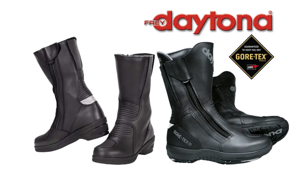 Daytona, producătorul german de încălțăminte pentru motocicliști, oferă o gamă variată de cizme, bocanci și ghete. Acestea pot fi împărțite în trei categorii principale. Prima categorie cuprinde cizmele, bocancii și ghetele de motociclist obișnuite, potrivite pentru motociclete clasice sau sport, sau pentru scutere. A doua categorie este reprezentată de modelele cu membrană Gore-Tex, impermeabile garantat, ideale pentru drumeții și pentru naveta zilnică a celor care nu se sperie de ploaie și nu doresc să aibă picioarele ude și friguroase atunci când coboară de pe motocicletă. În cea de-a treia categorie se regăsesc cizmele sport și cele pentru competiții, precum cele elegante, care sunt accesorii perfecte pentru orice motocicletă sport modernă sau clasică.