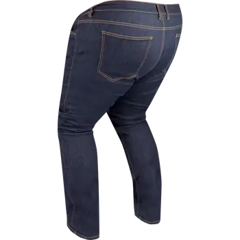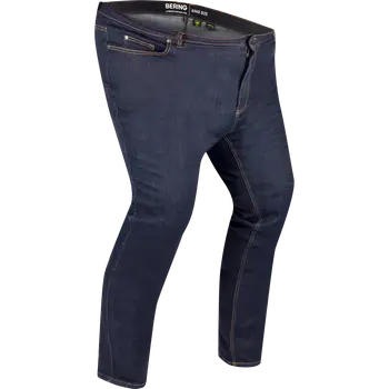 Blugii Moto Bărbați din Denim Cordura BERING TRUST King Size · Albastru sunt concepuți cu o croială Fit potrivită pentru mai multe conformații. Denim CORDURA Hyper Stretch oferă libertate de mișcare, iar zonele de confort și burduful din zona genunchilor îmbunătățesc ergonomia. Protecțiile de genunchi ALPHA sunt ajustabile pe înălțime și detașabile, iar buzunarele pentru protecții de șold permit adăugarea lor. Pantalonii au 5 buzunare exterioare, element reflectorizant și o buclă pentru conectare la bluzoanele Bering. Închiderea cu fermoar și capse asigură fixarea sigură.