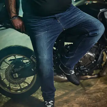 Blugii moto Bering Trust King Size sunt confecționați din Denim CORDURA Hyper Stretch și sunt potriviți pentru utilizare all season pe șosea. Integrează protecții de genunchi ALPHA CE detașabile, buzunare pentru protecții de șold și element reflectorizant, fiind recomandați motocicliștilor urbani care parcurg distanțe scurte.
