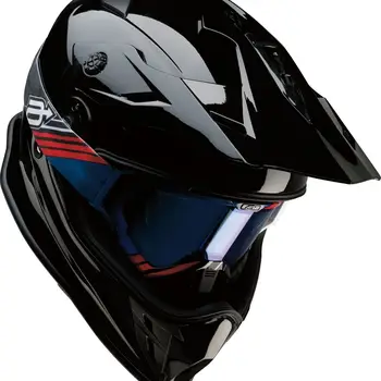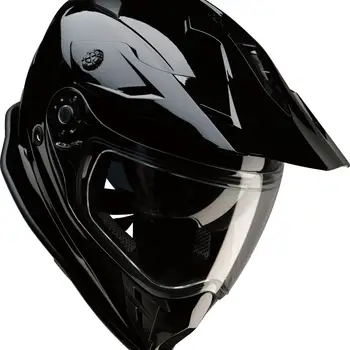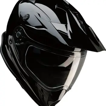 Cască moto dual-sport Z1R Range 2.0 Solid în culoarea Negru, cu carcasă din policarbonat injectat, EPS dublă densitate și vizieră solară integrată. Configurația cu cozoroc detașabil și compatibilitatea cu ochelari de cross o fac potrivită pentru utilizare mixtă.