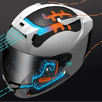 - În plus, marginile pronunțate din stânga și din dreapta ale părții superioare a coifului, combinate cu suprafața concavă a părții superioare a stabilizatorului, oferă performanțe aerodinamice îmbunătățite, siguranță și stil.