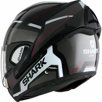 Cu casca flip-up Evoline Series 3, Shark a perfecționat în continuare conceptul de cască flip-up. Complet închis ca o cască integrală, precum și deschis ca o cască jet cu vizieră, modelul convinge prin zgomotul de vânt redus și prin aerodinamica excelentă. Mecanismul căștii este unic privind etanșeitatea și ventilația. Funcția „auto-up” permite deblocarea vizierei și bărbiei în același timp. Caracteristica specială: partea bărbiei este pliabilă complet înapoi.