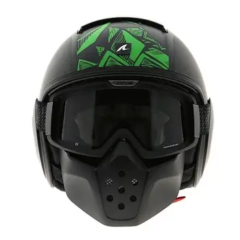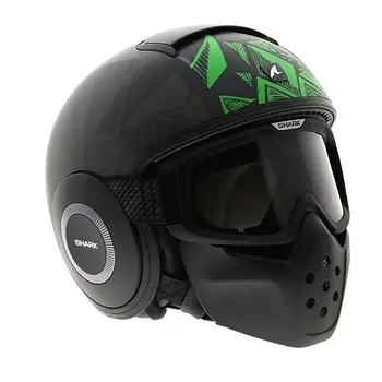 Shark Raw este aici pentru a vă permite să vă trăiți fantezia. Designul inspirat de aviator, combină o învelișă termoplastică de 3/4, cu ochelari în stil off-road și o mască pentru a crea o cască perfectă pentru sfâșierea străzilor în orice junglă urbană. Căptușeala și sistemul de ventilație menține răcoros chiar și la temperaturi ridicate, în timp ce masca de față din plastic protejează gura de insectele și de resturile rutiere...