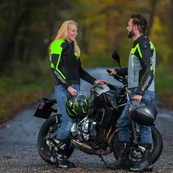 Geacă moto sport-touring, din materiale de calitate foarte bună. Are un design modern, o apariție bună. Este echipată cu membrană impermeabilă și antivânt, plus cu o căptușeală termică, care ajută adaptarea cu ușurință la diferite condiții meteo, puteți să porniți la călătorii lungi, vremea nu cauzează surprize. Este dotat cu fixare de căptușeală ZipOut, care nu blochează nici măna, nici ceasul când îmbrăcați. Protectoarele de tip CE asigură siguranță în trafic, sunt schimbabile cu protectoare SAS-TECH. Inserțiile elastice din KEVLAR ajut la mișcarea liberă a conducătorului, astfel orice manevră este ușor efectuabilă.