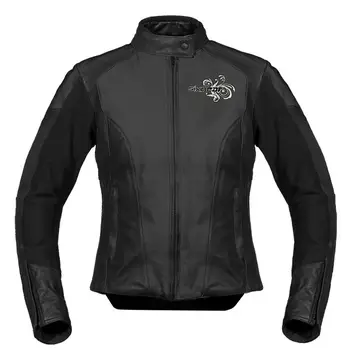 Geacă moto damă cu apariție sportivă, confecționată din piele de bovină. Este destinată motocicliștilor sport-touring. Geaca are o apariție foarte bună, dată de combinația culorilor și de aranjarea acestora. Prin căptușeala termo, geaca este confortabilă chiar și la temperaturi scăzute. Inserțiile elastice din Kevlar ajut la mișcarea liberă a conducătorului, astfel orice manevră este ușor efectuabilă. Este echipată cu protectoare de calitate cu certificare CE, care sunt schimbabile cu protectoarele SW, pe spate, coloana vertebrală este protejat de un protector de spumă absorbantă de șoc.