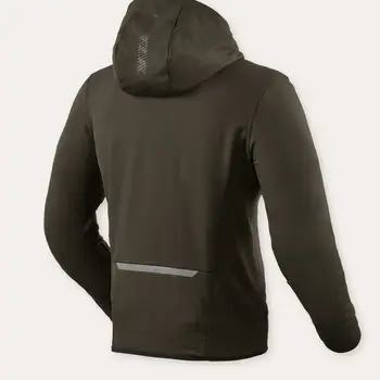 Geaca Moto din Textil REVIT Parabolica · Verde închis este gândită pentru mers urban, cu croială sport și material poliester stretch pentru libertate de mișcare. Include protecții SEESMART® CE nivel 1, este certificată CE AA și este pregătită pentru protecție de spate SEESOFT® CE nivel 2, respectiv pentru sistemul airbag Avertum Tech-Air®.
