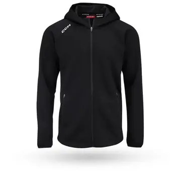Hanoracul CCM FZIPP2 Locker Hoodie este realizat dintr-un material moale de polar tech, cu un design modern. Capota este respirabilă și are un fermoar complet, iar pe lateral se găsesc buzunare cu fermoar. Este ideal pentru a fi purtată atunci când te îndrepți spre sală, în vestiar sau în autobuz în timpul deplasărilor. Poți alege din variantele de culoare: negru sau roșu.