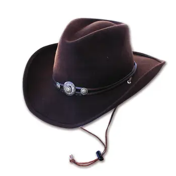 Pălăria cowboy WILD WEST IDAHO este un model din lână, cu bandă concho și șnur reglabil, disponibil în variantele maro și negru.