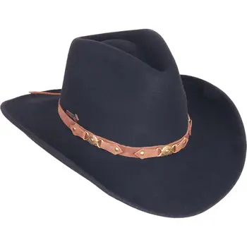 Pălăria cowboy din lână WILD WEST BANDIT este o pălărie neagră, clasică tradițională, realizată din lână de înaltă calitate. Este ușoră, confortabilă și hidrofugă, are boruri modelabile si un decor din piele.