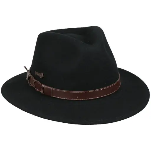 Pălăria cowboy din lână WILD WEST Norton este o pălărie neagră, clasică tradițională, realizată din lână de înaltă calitate. Este ușoră, confortabilă și hidrofugă, are boruri modelabile si un decor din piele.