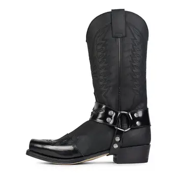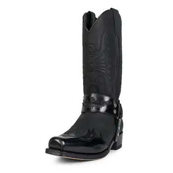 Cizmele Cowboy Unisex din Piele Naturală SENDRA BOOTS 7862 58 SETA SPRINTER NEGRO, într-o nuanță elegantă de negru, impresionează prin designul lor distinctiv care îmbină stilurile Biker și Cowboy. Detaliul cu curea decorativă pe rist adaugă un aer robust, în timp ce vârful pătrat și tocul semi-cubanez, aproape drept, oferă o notă clasică și sofisticată. Perfecte pentru cei care doresc să îmbine confortul cu un stil inconfundabil.