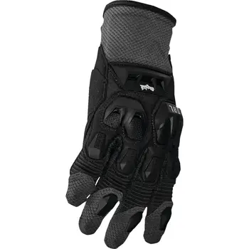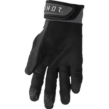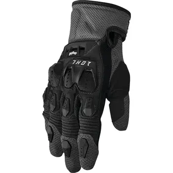 Mănușile Enduro - Cross THOR TERRAIN · Negru / Gri sunt construite pentru control bun pe ghidon și ventilație constantă în utilizare off-road. Materialele respirabile și inserțiile de protecție TPR oferă echilibru între confort și siguranță funcțională. Manșeta reglabilă asigură fixare sigură pe mână în teren variat.