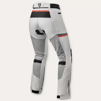 Pantalonii Moto Damă de Vară din Textil REVIT TORNADO 3 LADIES · Argintiu sunt concepuți pentru touring pe trei sezoane, cu ventilație ridicată și protecție certificată. Căptușeala detașabilă hydratex®|Lite 2-in-1 oferă impermeabilitate și confort termic, iar fără ea panourile PWR|shell mesh susțin fluxul de aer în zonele superioare și inferioare ale picioarelor. Protecțiile SEEFLEX CE Nivel 2 la genunchi și SEESMART CE Nivel 1 la șold completează nivelul de siguranță.