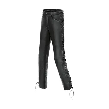 Pantaloni clasici din piele pentru motocicliști chopperiști, cu un stil unic, oferit de design și de pielea naturală. Pantalonii sunt echipați cu genunchiere pentru a asigura protecția motociclistului. Sunt destinate călătoriilor pe timp de vară.