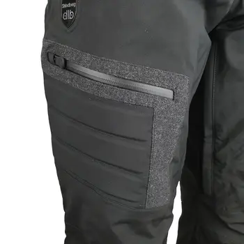 Au cusături termolipite, material stretch pe două direcții, articulații preformate, fermoare YKK impermeabile, aerisire laterală și protecție Microvalterm 80 g/mp.