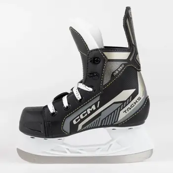 Actualizarea mult așteptată a gamei Tacks de la CCM a sosit în sfârșit, iar patinele hochei, copii, jucător Tacks AS550 Youth sunt perfecte pentru jucătorii recreaționali și cei care încep să învețe. Aceste patine au o rigiditate de 115, ceea ce le face mai flexibile și mai ușor de rod. Ele sunt disponibile în mărime Regular. Construcția bocancului, realizată prin injectare 3D, îmbunătățește confortul și durabilitatea, iar textura adăugată sporește durabilitatea. Căptușeala din microfibră HD elimină umezeala și mirosurile neplăcute, asigurând confort. Limba asimetrică de 7mm oferă flexibilitate și confort. Tălpa interioară semnătură CCM oferă suport și confort. Suportul Speedblade și lama din oțel inoxidabil îmbunătățesc pasul cu un unghi de atac puternic, deși lama nu este înlocuibilă. Varianta pentru tineri are grafică neagră și auriu, cu designuri cibernetice. Patinele CCM AS-550 oferă o opțiune flexibilă și confortabilă pentru jucătorii în dezvoltare și patinatorii recreaționali, cu durabilitate și performanță în minte.