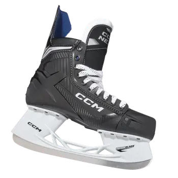 Patinele CCM Next sunt echipate cu cele mai noi tehnologii pentru a oferi viteză, manevrabilitate și confort de neegalat. Cu o construcție dintr-o singură piesă (One-Piece Boot), aceste patine asigură un transfer de energie direct și o potrivire strânsă, permițându-vă să obțineți accelerații rapide și să realizați schimbări de direcție precise. Sistemul de suport SpeedBlade XS, împreună cu lamele din oțel inoxidabil CCM XS, asigură o performanță de durată, astfel încât să rămâneți mereu în control, indiferent de intensitatea jocului.
